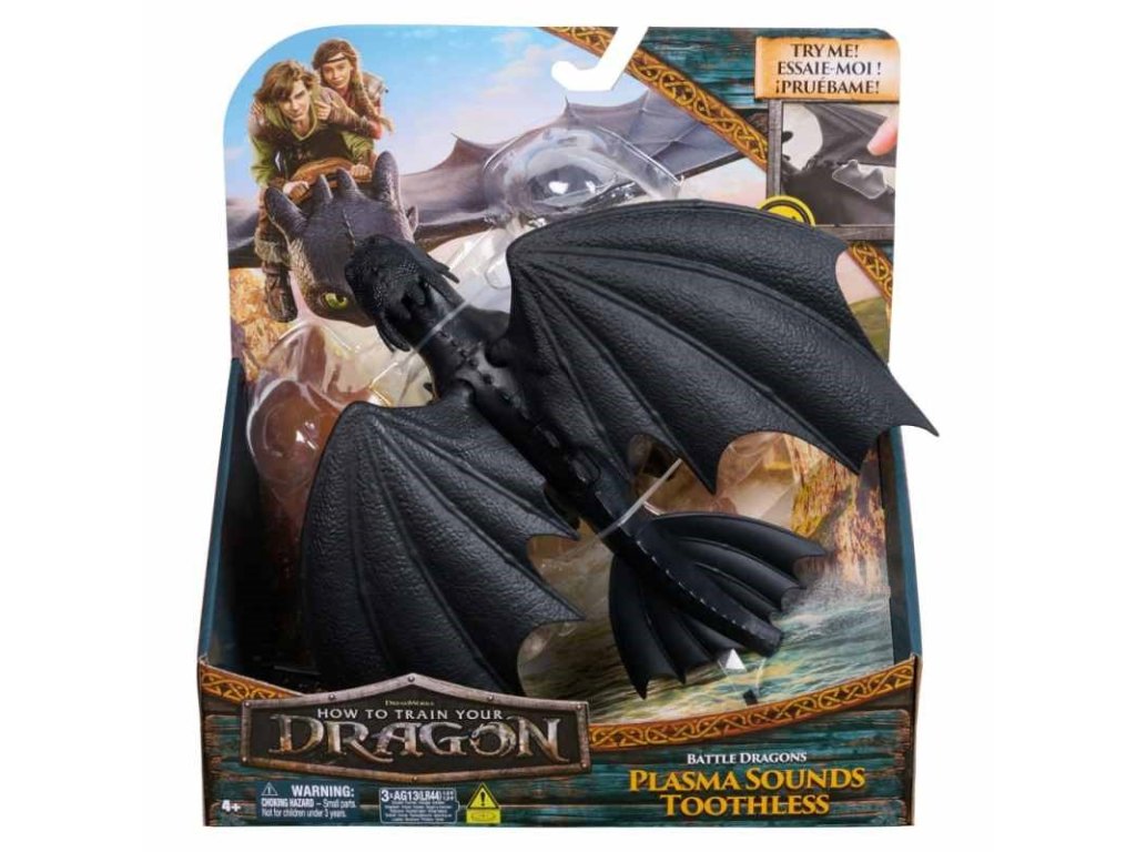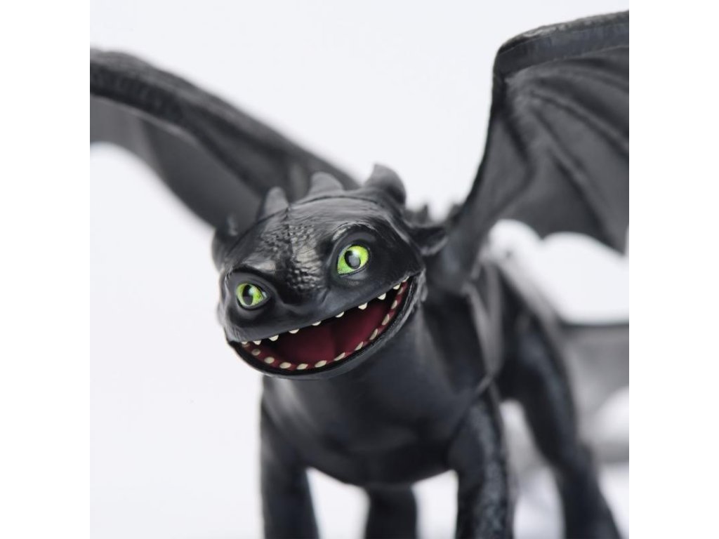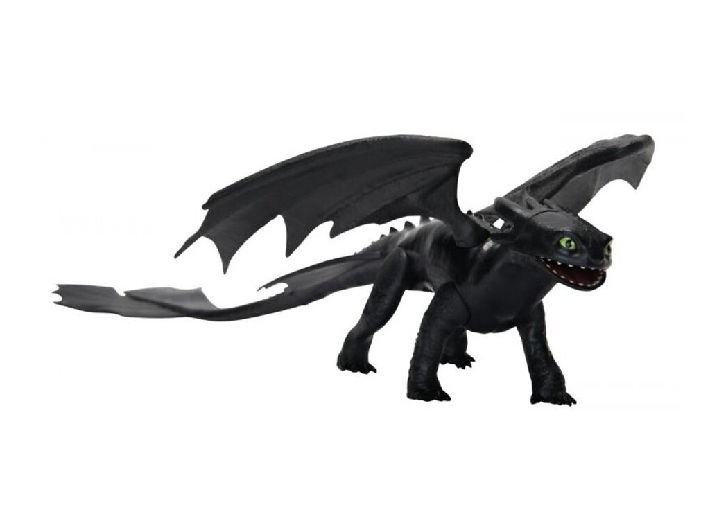 Ako si vycvičiť draka ToothlessStlač drakovi šupiny na chrbte a začne vydávať zvuky. Obsahuje draka s pohyblivou hlavou, krídlami a nohami, čo ti umožní si prehrávať realistické akčné a letové scény. Veľkosť draka je 30 cm. Batérie 3x AG13 (sú súčasťou balenia)Vek : 4+