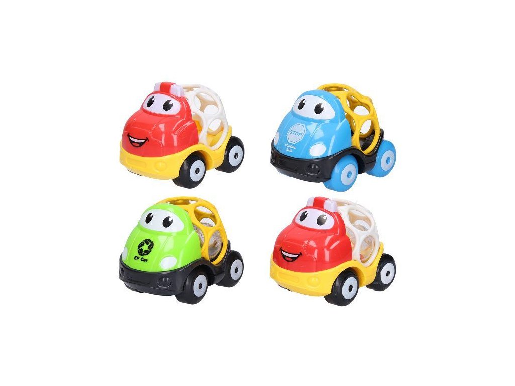 Auto hrkajúce 9 cm Veselé hrkajúce auto s mäkkou korbou. Auto má vo vnútri hrkajúcu guličku.Jazdí na voľný pohon. Farby: zelená, žltá, modrá, červenáVeľkosť: 9,5 x 7,5 x 8 cmUvedená cena je za 1 ks V prípade celého balenai 12 ks
