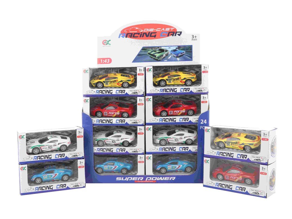 Auto kovové 10cmKovové autíčko na spätné natiahnutie. Model auta: 1:43Veľkosť auta: 10 x 2,5 x 4,5 cmRôzne farby: strieborná, čierna, modrá, oranžováVhodné od 3+Uvedená cena je za 1ksV prípade záujmu o celé balenie 24ks