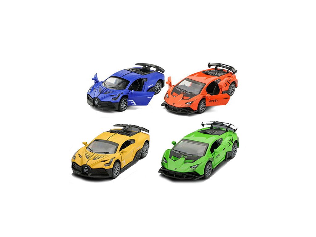 Auto závodné na spätné natiahnutie 12cmKovové závodné autíčko na spätné natiahnutie. Otváracie predné dvere. Farby: modrá, oranžová, zelená, žltáVeľkosť: 12 x 5 cmUvedená cena je za 1 ksV prípade celého balenia 12kusov