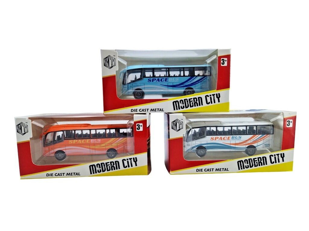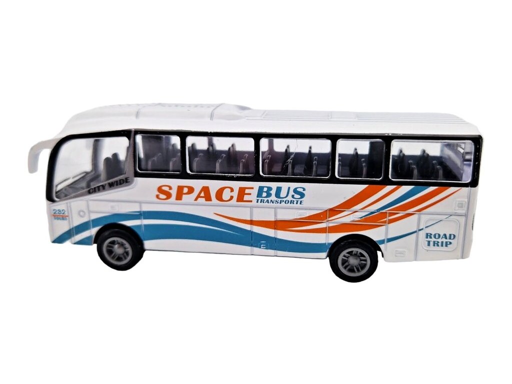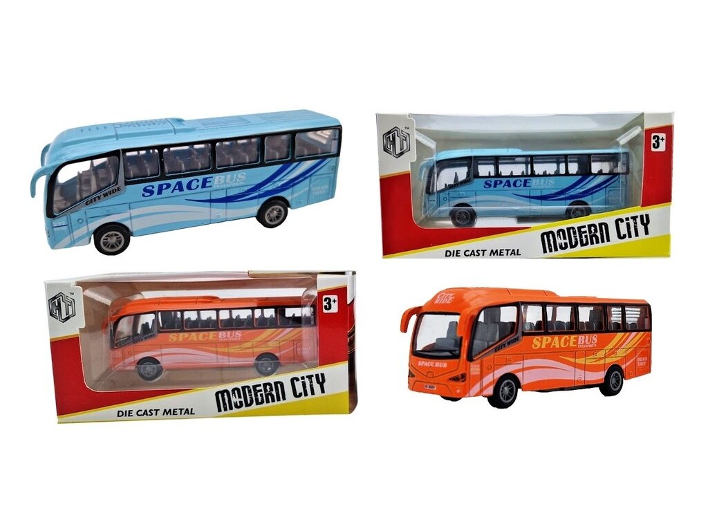 Autobus kovový 3 farbyKovový autobus na spätné natiahnutie. Balené v krabičke. Veľkosť autobusu: 11 x 4 x 3 cm Farby: biela, modrá, oranžováVhodné od 3+