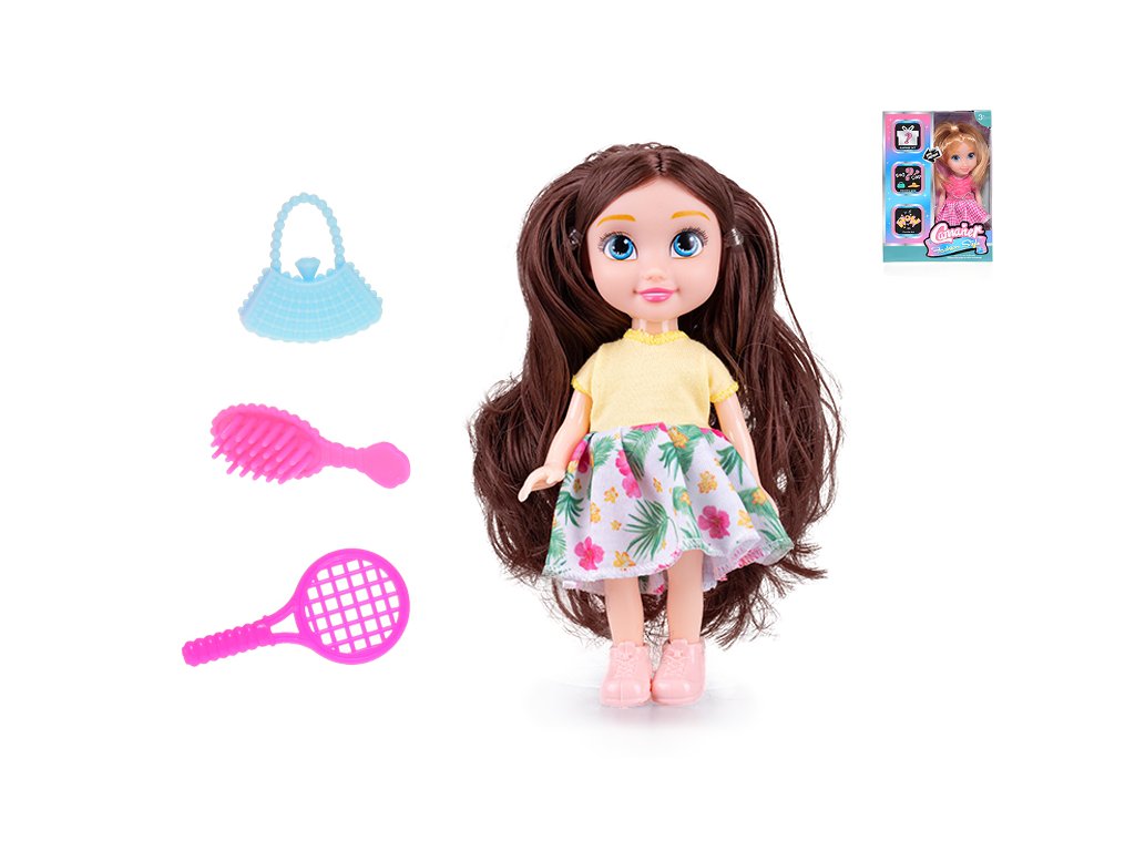 Bábika s doplnkami 15,5cm/2druhyRoztomilá malá bábika s doplnkami. Vyberať môžete z dvoch variantov. Rozmer bábiky: 15,5 cmMateriál: plastDruhy : blondína, hnedovlasáBalené v krabičke.