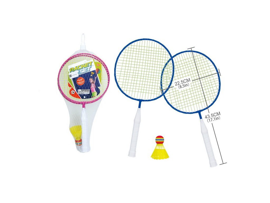 Badminton s košíkom 44 cmZahrajte sa tradičnú hru badminton s ktorou zažijete množstvo zábavy na dlhé hodiny na záhrade alebo v prírode. Balenie obsahuje: 2x rakety, 1x košíkVeľkosť rakety: 43,5 x 22,5 cmNevhodné do 3 rokov
