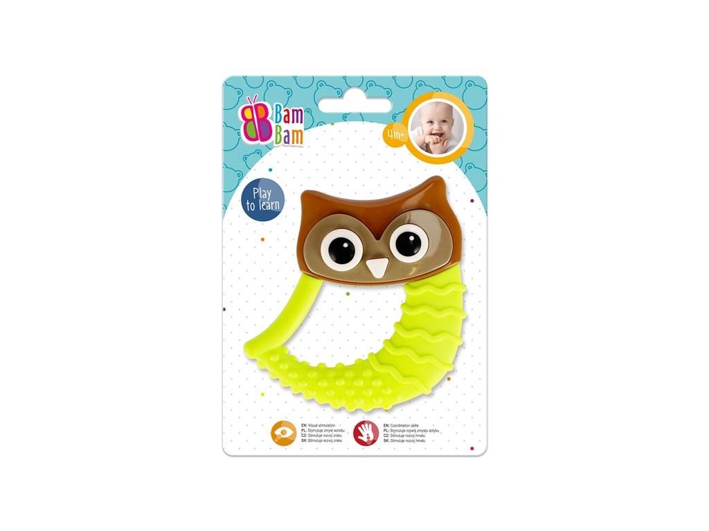 BamBam Hrkálka/hrýzatko sova 9 cmHrkálka slúži na rozvoj dieťatka. Ideálna veľkosť pre detské ručičky. Veľkosť a tvar sú prispôsobené k ľahkému uchopeniu. Zaujme pozornosť dieťaťa, motivuje ho k hre. Velkosť: 9 x 9 cmHračka je vhodná pre deti od 4 mesiacov