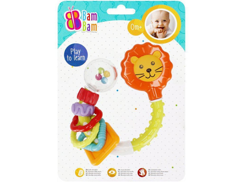BamBam Hrkálka LevHrkálka BAM BAM Lev s tlmenými farbami prináša dieťaťu veľa radosti už od narodenia. Zatrasením hračky hrkálka vydáva charakteristické zvuky, vďaka ktorým sú citlivejšie na rozlíšenie ich intenzity. Farebné krúžky a guličky v priehľadnej guli vaše dieťatko určite zaujmú. Hračka rozvíja zrak, hmat, sluch a manuálne zručnosti dieťaťa. Veľkosť: 12 x 13 x 4 cmVhodné od 0m+