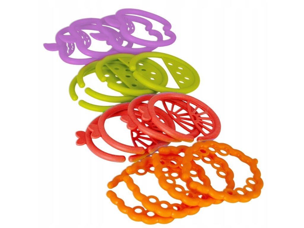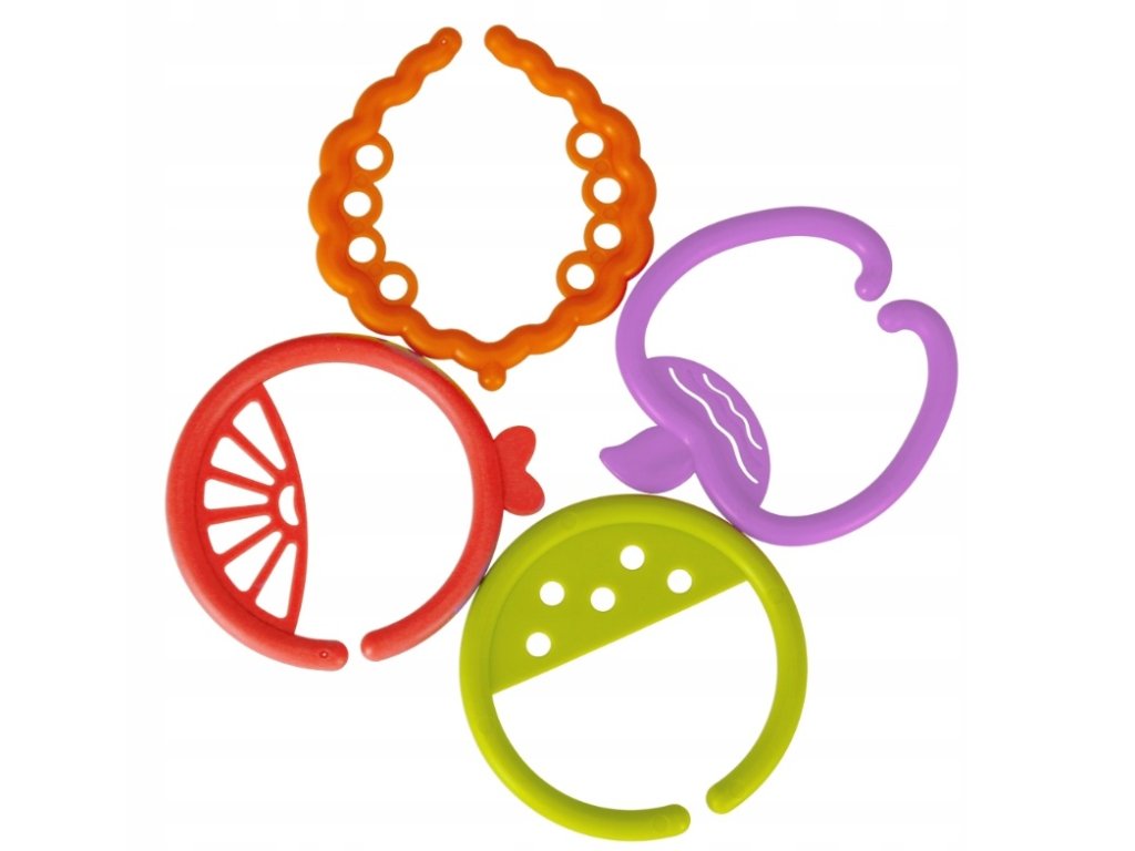 BamBam Reťaz ovocie 16-dielná súpravaKrúžky s rôznou farbou a textúrou stimulujú zrak a hmat a aktivujú jeho zmyslové receptory.Senzorické hračky zaručujú všestranný rozvoj dieťaťa, ktoré prostredníctvom hry zlepšuje koordináciu medzi vedomým uchopovaním a videním, ako aj zlepšuje manuálne zručnosti.Dá sa použiť aj ako hryzátko a dodáva sa v štyroch vzoroch a štyroch farbách. Rozmer krúžku je cca 7 cm. Súprava je určená pre deti od 0 mesiacov.Balenie: 16 dielov Veľkosť krúžku 7 cm