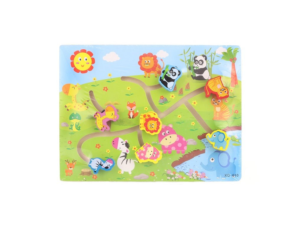 Bludisko drevené zvieratkáJednoduchá hračka pre najmenších, ktorá hravou metódou podporuje psychomotorický vývoj dieťaťa, učia poznávať domáce zvieratká. Pomáha deťom rozvíjať jemnú motoriku a logické myslenie prostredníctvom hrySo 7 pohyblivými figúrkamiVhodný pre deti od 3 rokovRozmery : 29,5 x 22 cm
