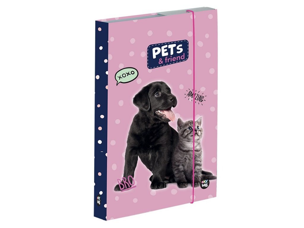 Box na zošity A4 Psík a mačkaŠkolský box na zošity, formát A4, s motívom, zatváranie zaistené gumičkou, materiál tvrdý karton. Formát: A4Rozmer: 32 x 24 x 4,5 cm