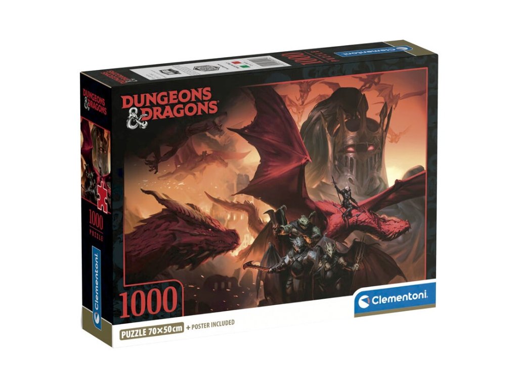 Clementoni Puzzle 1000 Dungeons & DragonsObrázkové puzzle, ktoré si môžu deti poskladať z 1000 dielov. Presnosť jednotlivých dielikov, optimálne rozlíšenie pri tlači a odolnosť materiálu potvrdzujú dlhoročnú kvalitu týchto výrobkov. trénujú vizuálnu pamäť, učí manuálnej zručnosti a trpezlivostiposkladaním puzzle vznikne obrázok s rozmermi: 50 x 70 cmplagát súčasťou baleniaPočet dielov: 1000