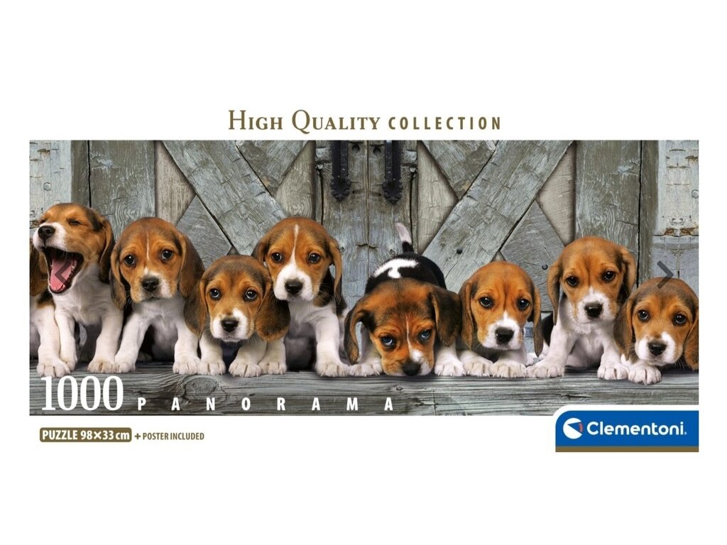 Clementoni Puzzle 1000 Panorama BeaglesObrázkové puzzle, ktoré si môžu deti poskladať z 1000 dielov. Clementoni je jedným z najväčších výrobcov puzzle na svete. Presnosť jednotlivých dielikov, optimálne rozlíšenie pri tlači a odolnosť materiálu potvrdzujú dlhoročnú kvalitu týchto výrobkov. trénujú vizuálnu pamäťučí manuálnej zručnosti a trpezlivostipočet dielov: 1000rozmer: 98 x 33 cm