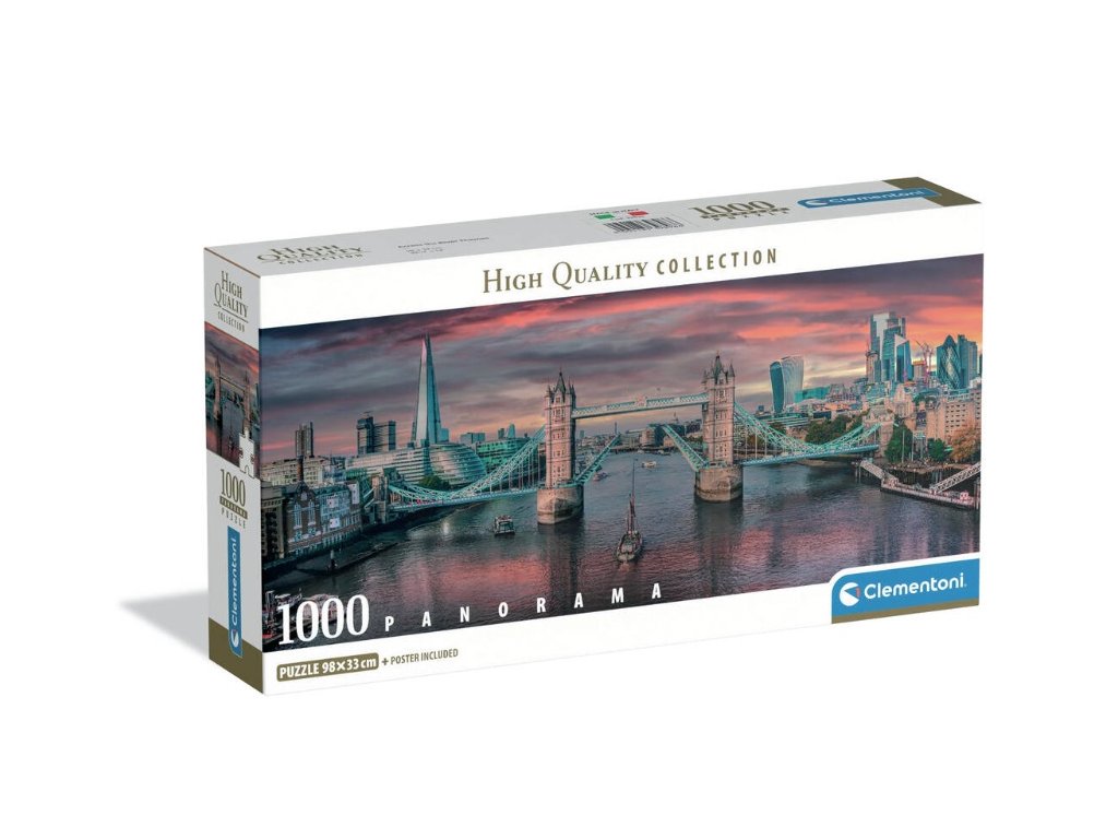 Clementoni Puzzle 1000 Panorama Cez rieku TemžuObrázkové puzzle, ktoré si môžu deti poskladať z 1000 dielov. Clementoni je jedným z najväčších výrobcov puzzle na svete. Presnosť jednotlivých dielikov, optimálne rozlíšenie pri tlači a odolnosť materiálu potvrdzujú dlhoročnú kvalitu týchto výrobkov. trénujú vizuálnu pamäťučí manuálnej zručnosti a trpezlivostipočet dielov: 1000rozmer: 98 x 33 cm