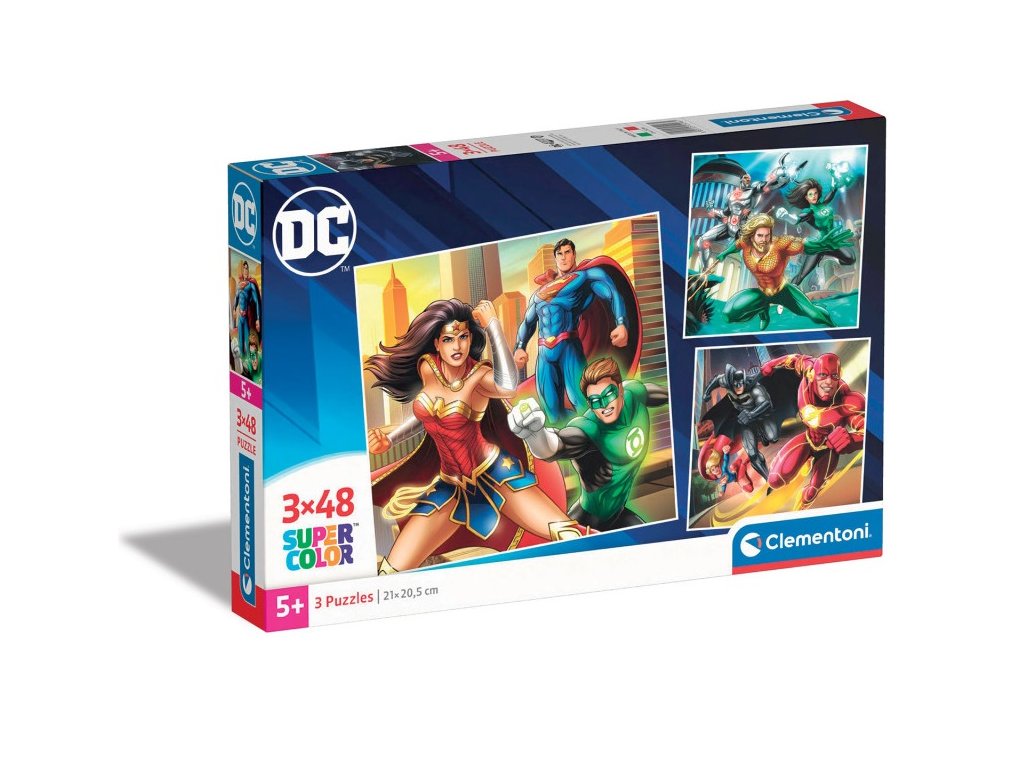Clementoni Puzzle 3x48 DC Comics Justice LeagueSada 3 puzzle (3×48 dielikov). Veselé, hravé motívy lákajú ku skladaniu; jasné farby uľahčujú triedenie. Dieliky sa dobre držia a hladko zapadajú – rozvíja sa jemná motorika aj sústredenie. Ostrá tlač a presný výsek. trénujú vizuálnu pamäťučí manuálnej zručnosti a trpezlivostirozmery : 21 x 20,5 cmodporúčaný vek: 5+