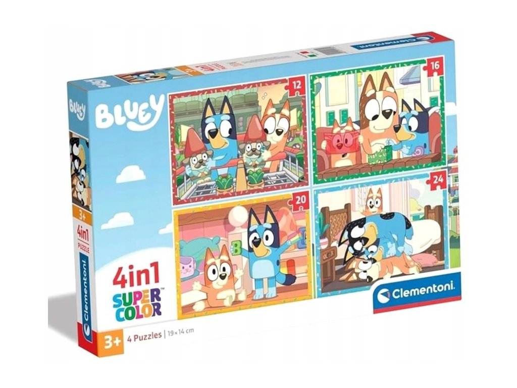 Clementoni Puzzle 4v1 BlueyPuzzle pre deti 4v1 so 4 rôznymi obrázkami. Obsahuje obrázok s 12 dielikmi, obrázok so 16 dielikmi, obrázok s 20 dielikmi a jeden obrázok s 24 dielikmi puzzle. Clementoni je jedným z najväčších výrobcov puzzle na svete. Presnosť jednotlivých dielikov, optimálne rozlíšenie pri tlači a odolnosť materiálu potvrdzujú dlhoročnú kvalitu týchto výrobkov.Prednosti:trénujú vizuálnu pamäťučí manuálnej zručnosti a trpezlivosti4x puzzle, 19 x 14 cm
