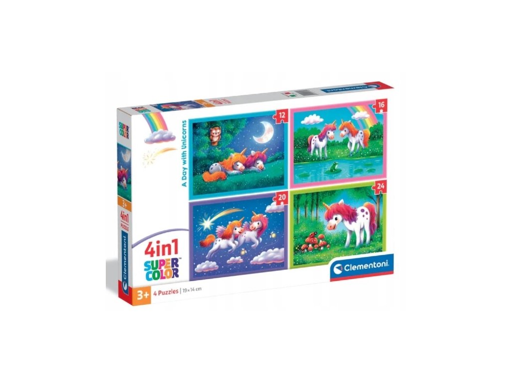 Clementoni Puzzle 4v1 UnicornPuzzle pre deti 4v1 so 4 rôznymi obrázkami. Obsahuje obrázok s 12 dielikmi, obrázok so 16 dielikmi, obrázok s 20 dielikmi a jeden obrázok s 24 dielikmi puzzle. Clementoni je jedným z najväčších výrobcov puzzle na svete. Presnosť jednotlivých dielikov, optimálne rozlíšenie pri tlači a odolnosť materiálu potvrdzujú dlhoročnú kvalitu týchto výrobkov.Prednosti:trénujú vizuálnu pamäťučí manuálnej zručnosti a trpezlivosti4x puzzle, 19 x 14 cm