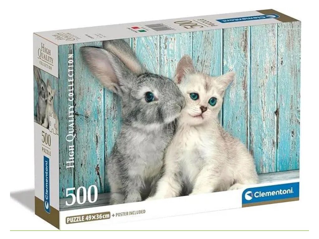 Clementoni Puzzle 500 Mačiatko a zajačikObrázkové puzzle, ktoré si môžu deti poskladať z 500 dielov. Presnosť jednotlivých dielikov, optimálne rozlíšenie pri tlači a odolnosť materiálu potvrdzujú dlhoročnú kvalitu týchto výrobkov. trénujú vizuálnu pamäť, učí manuálnej zručnosti a trpezlivostiposkladaním puzzle vznikne obrázok s rozmermi: 49 x 36 cmplagát súčasťou baleniaPočet dielov: 500