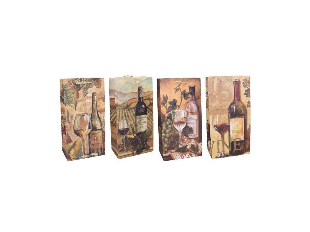 Darčeková taška na 2 fľaše 18 x 9 x 35 cmDarčeková taška vyrobená z kvalitného tvrdého papiera s rôznymi motívmi, vhodná na jednoduché balenie fliaš, vína alebo iných suvenírov a darčekov. Rozmery: 18 x 9 x 35 cmUvedená cena je za 1 ksV prípade celého balenia: 12 ksRôzné motívy, zasielame náhodne podľa skladovej dostupnosti. Ak si želáte konkrétnu farbu napíšte do poznámky k objednávke.