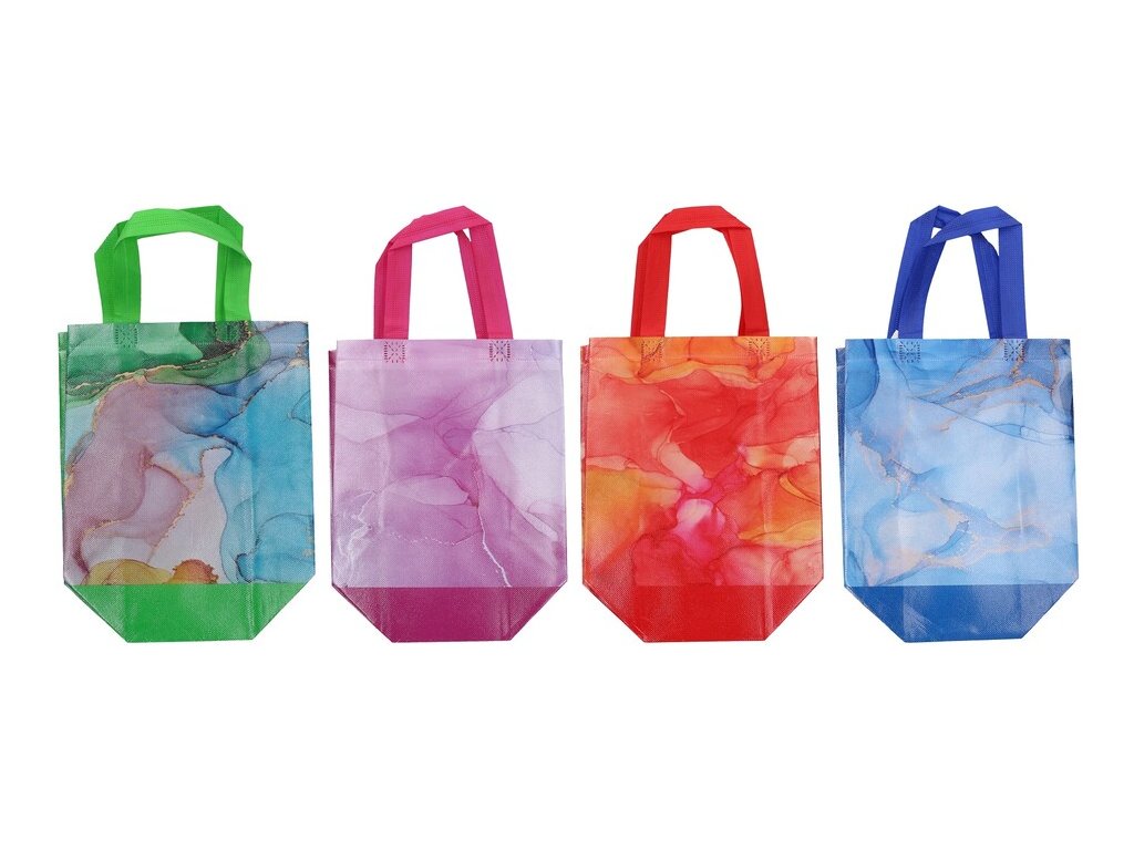 Darčeková taška 24 cmTaška vyrobená z netkanej textílie, vhodná na jednoduché balenie suvenírov, darčekov.... Rozmery: 22 x 24 x 10 cm4 farby : modrá, zelená, fialová, červenáMateriál : netkaná textília