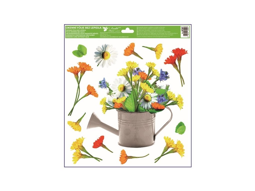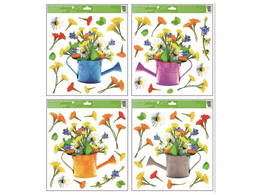 Dekoračná okenná fólia konvica 4druhyTáto dekoračná okenná fólia s motívom farebných kanvíc plných kvetín o rozmere 30 × 33,5 cm vnesie do interiéru sviežu jarnú atmosféru. Priľne elektrostaticky – bez lepidla, nezanecháva žiadne stopy, ľahko sa aplikuje a je opakovane použiteľná. Vlastnosti: Neobsahuje lepidlo - žiadne zvyšky, žiadne šmuhy, ľahká manipulácia. 4 druhyRôzné motívy na výber. Zasielame náhodne podľa skladovej dostupnosti. Ak si želáte konkrétny motív napíšte do poznámky pri objednávke.
