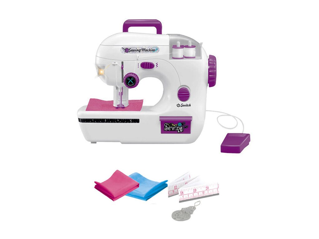 Detský šijací stroj 24cmMalý šijací stroj na batérie. Tento šijací stroj je na prvé zoznámenie sa so šitím. Ide o hračku, jeho funkcie a schopnosti sa nemôžu porovnať so skutočným šijacím strojom. Napájanie: batérie 4xAA (nie sú súčasťou).Veľkosť: 24 x 20 x 9 cmBalenie obsahuje kúsky látky, navliekač ihiel, meter.USB kábel súčasťou.Vhodné od 3+