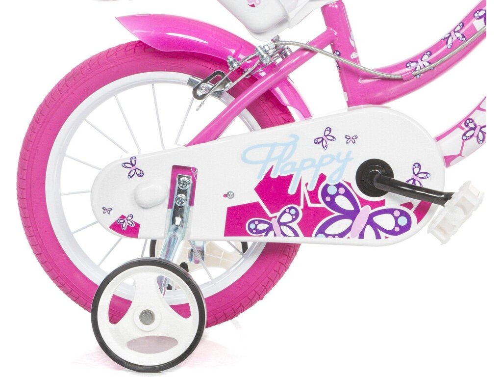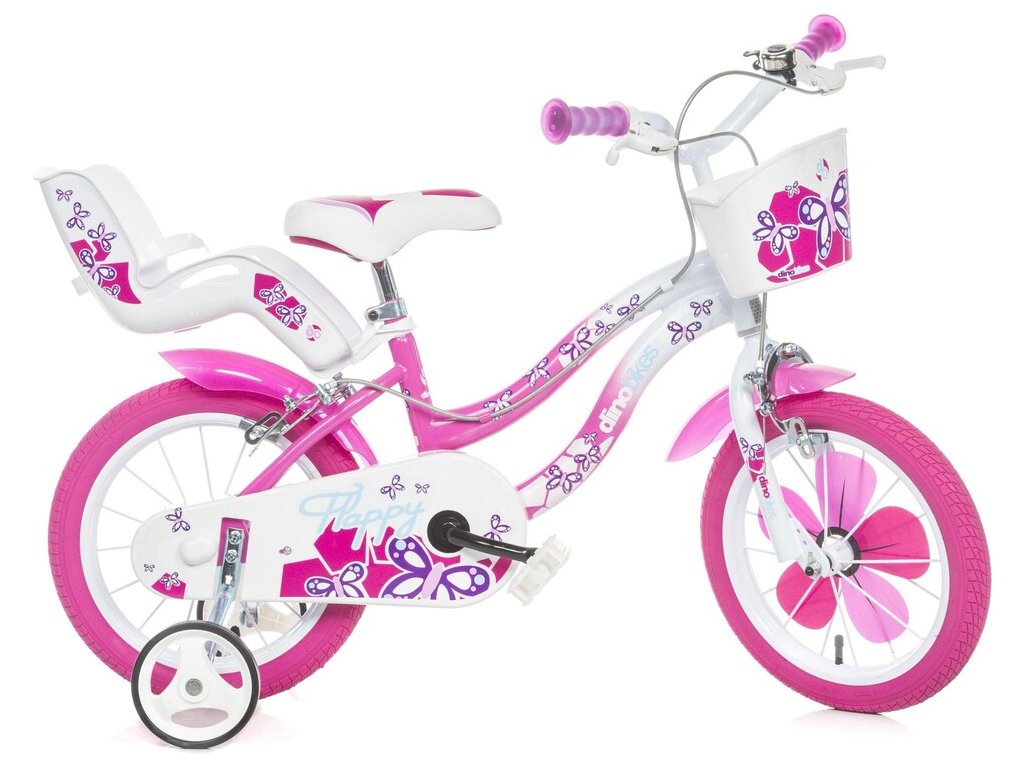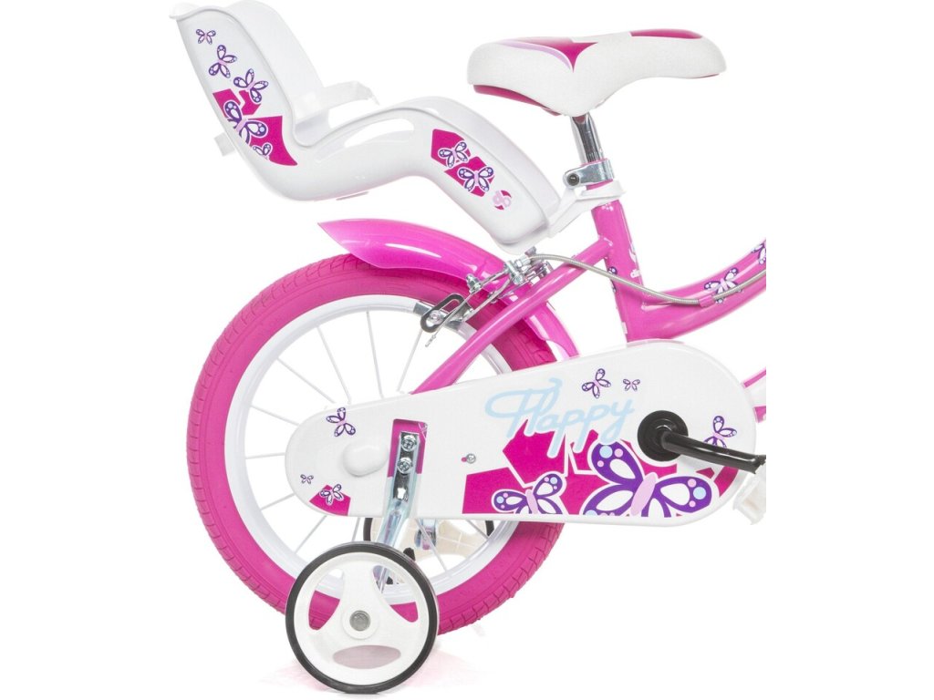 DINO Bikes - Detský bicykel Flappy 14" 514-02 - ružovo bielyDetský bicykel Dino 514-02 so sedačkou pre bábiku s košíkom - 14", výrobca Dino Bikes Italy je bicykel pre malé cyklistky. Kolesá majú kovový ráfik so vzduchom plnenou pneumatikou.Bicykel má dve V-brake brzdy.Stredové zloženie má voľnobeh.Bicyklík je vybavený pomocnými kolieskami, sedačkou pre bábiku a košíkom na predných riadidlách.Hmotnosť bicyklíka je 9,1 kg.Doporučená výška dieťaťa je 95-127 cm.