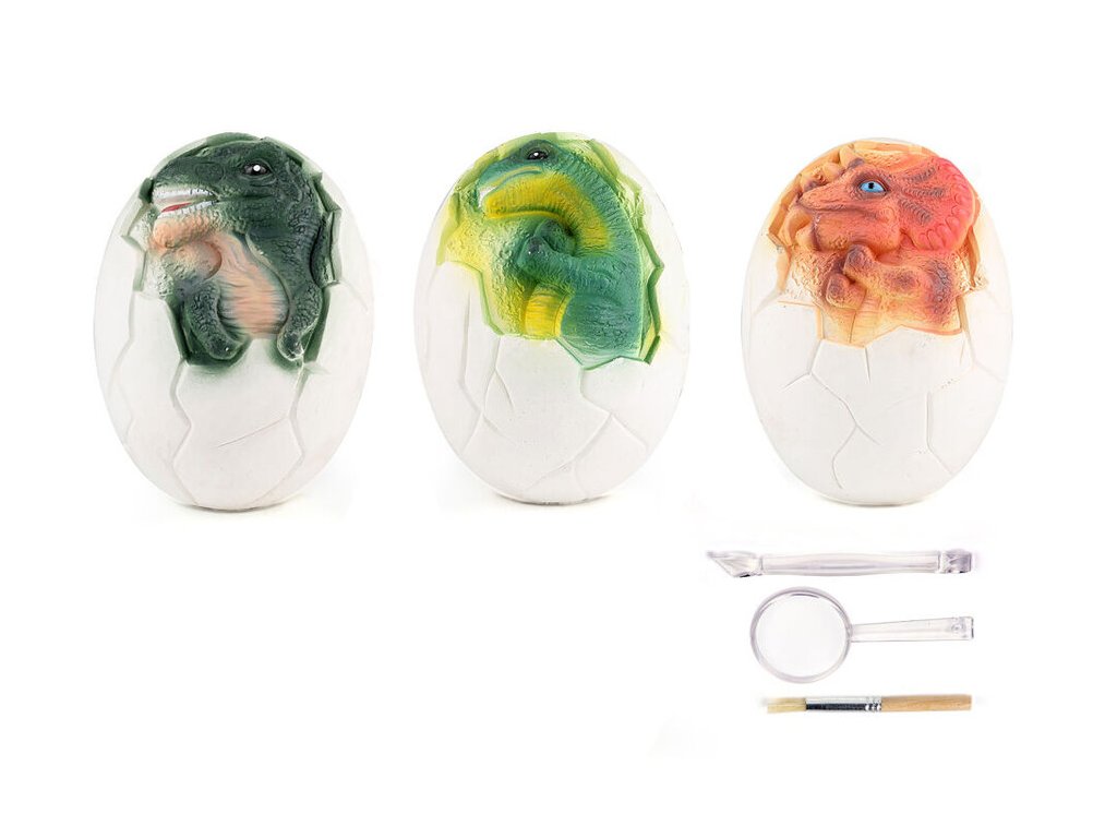 Dino vo vajíčku-vykop figúrkuV každom vajíčku sú schované figúrky dinosaura. Cieľom je pomocou priložených nástrojov figúrky odkryť. Veľkosť vajíčka: 7,5 x 11 cmBalenie obsahuje : nožík, štetec, lupuUvedená cena je za 1 ksJednotlivú sadu s konkrétnym zvieratkom si nemožno vybrať, zasielame náhodne.