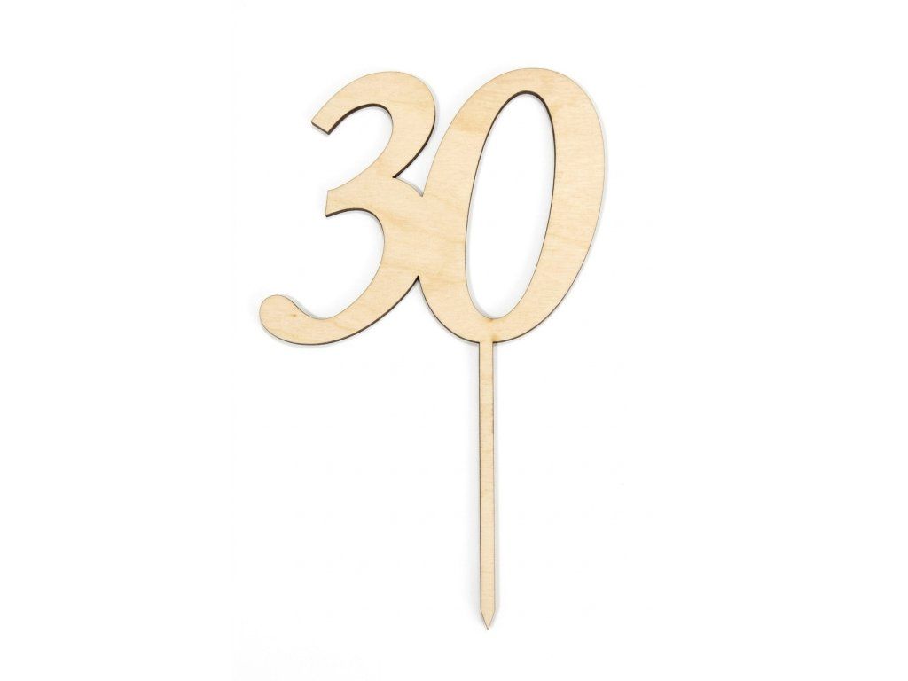 Drevený zápich na tortu s číslom "30" vyrobený z dreva