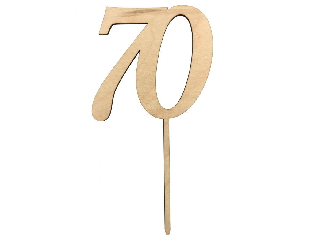 Drevený zápich na tortu s číslom "70" vyrobený z dreva