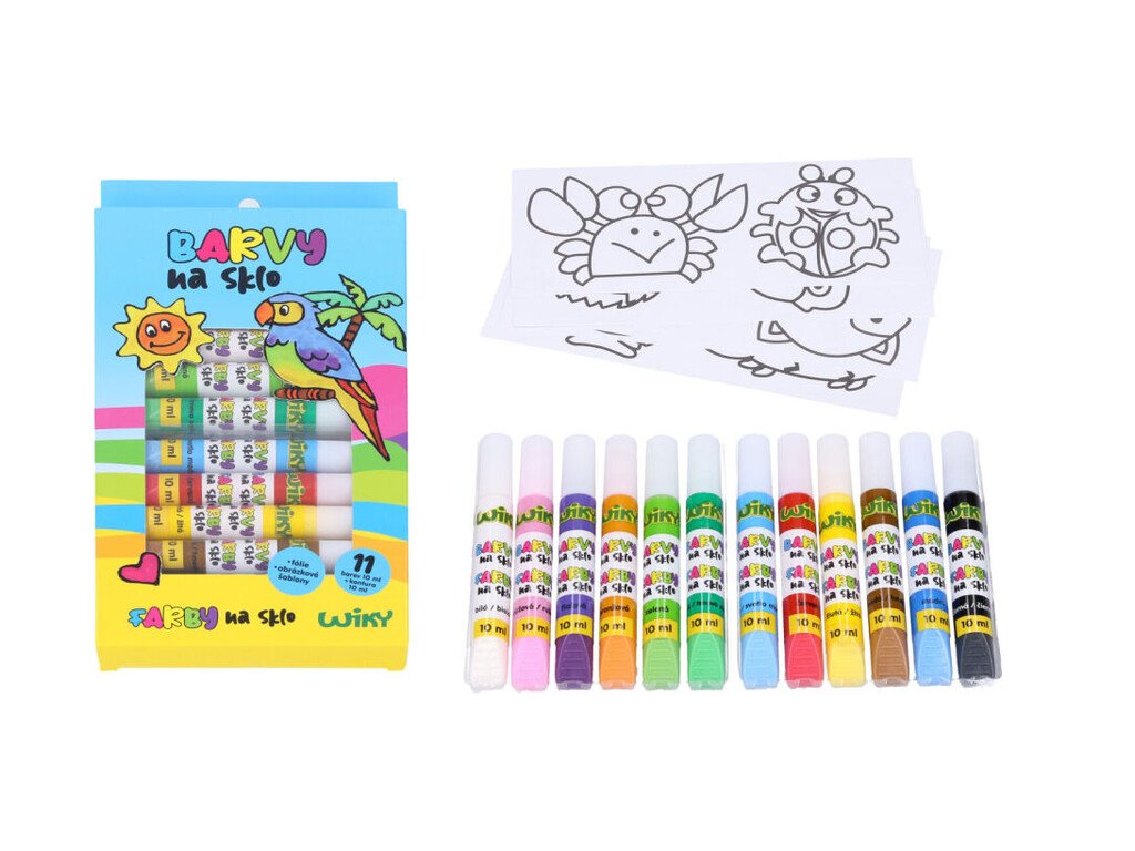 Farby na sklo 11+1 10mlJednoduché, zábavné, Ľahké. Vytvor si vlastnú čarovnú výzdobu. S farbami na sklo je umelcom každý! Po zaschutí si obrázok môžete umiestniť na okno, zrkadlo, pohár... Obsahuje: 11 farieb 10 ml + kontúra čierna 10 ml + fólie + šablónové obrázkyUrčené pre deti od 5 rokov. Netoxické. Bezpečné pre deti.