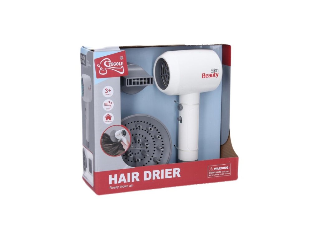 Fén na vlasy 18 cmFén má funkciu fúkania, dva nástavce, on/off tlačidlo a tlačidlo bez funkcie. Napájanie: na batériu 1xAA (nie je súčasťou balenia)Veľkosť: 18cmVhodné od 3+