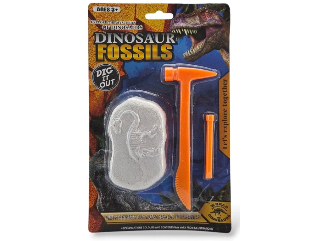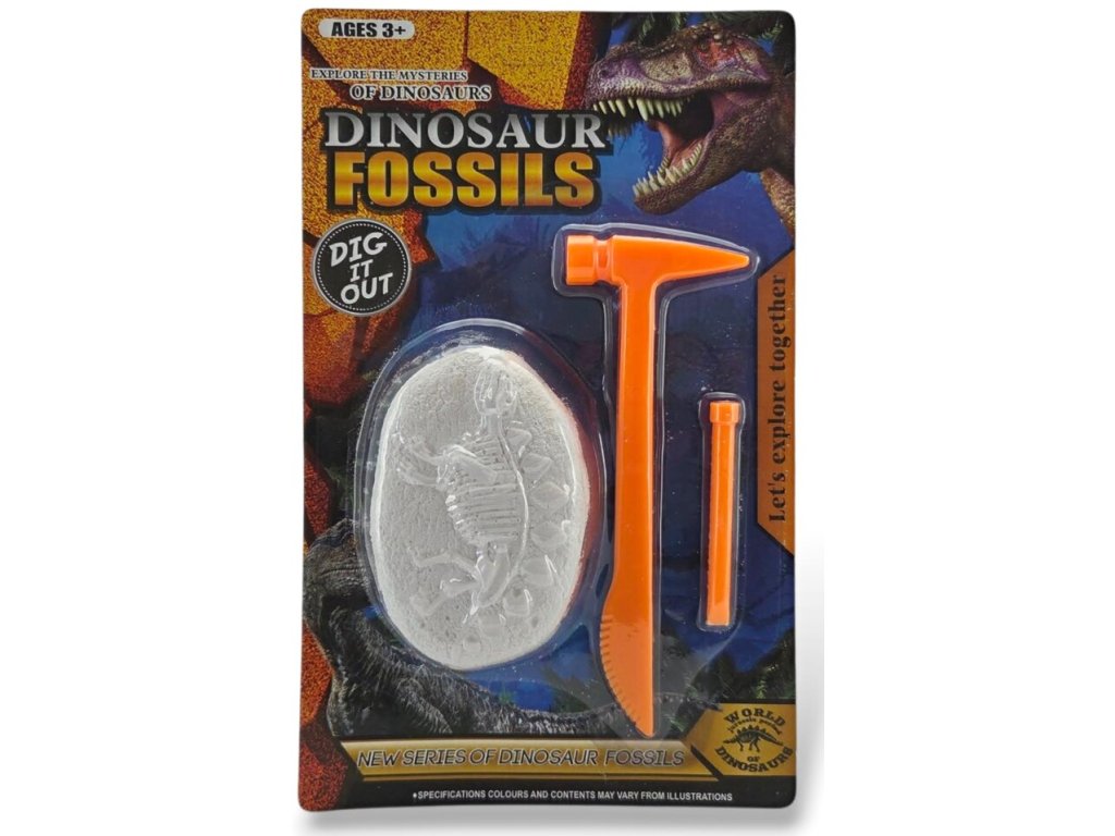 Fosília dinosaurusDnes už vyhynuté dinosaury nestretneme, ale je veľa ľudí, čo ich hľadá a zaoberá sa nimi. Aj deti si môžu vyskúšať prácu paleontológov a zo sadrovej kocky postupne získať kostru jedného z rôzných druhov dinosaurov v skameneline. Balenie obsahuje: fosíliu dinosaura, dláto, kladivkoVeľkosť fosílie: 9 x 6 x 3,5 cmRôzné druhy dinosaurov, zasielame náhodne podľa skladovej dostupnosti
