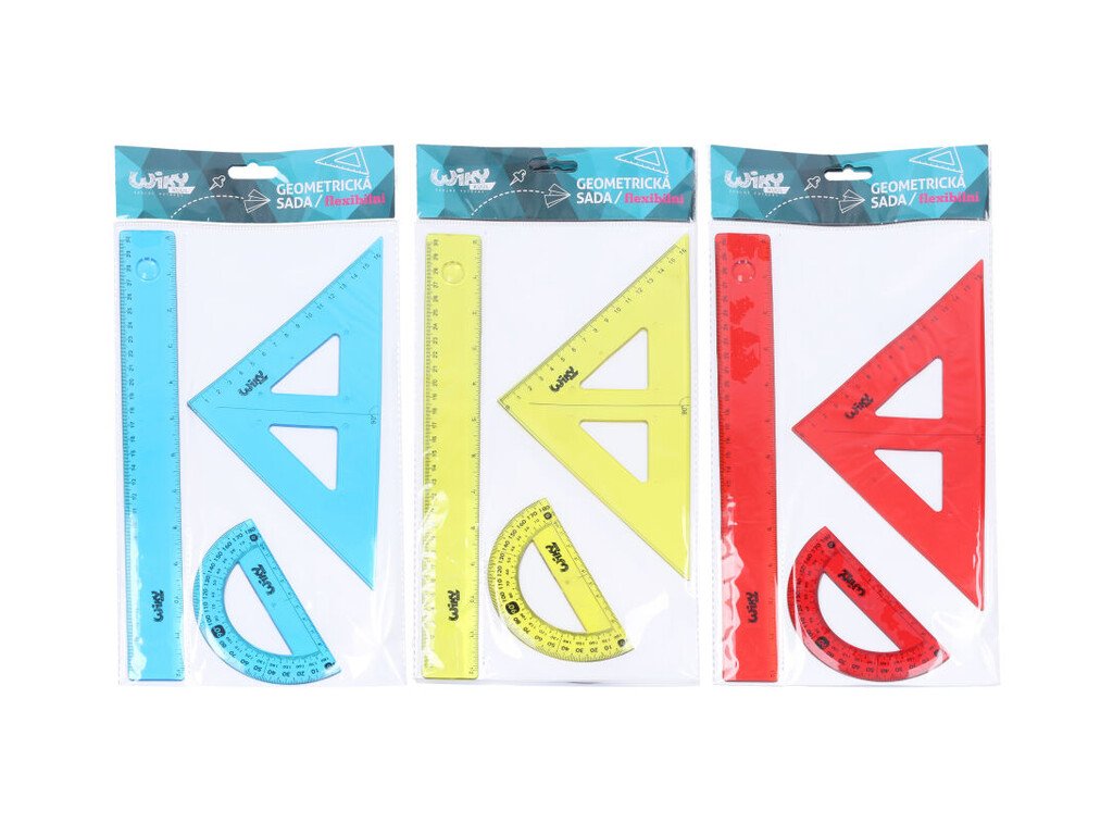 Geometrická sada flexibilná farebná skladom iba ČERVENÁ FARBA!Geometrická sada nesmie chýbať v žiadnej školskej výbave! skvelý a dôležitý pomocník pri rysovanízákladnou pomôckou nielen v geometriivyrobené z priehľadného plastujasne viditeľné rysky Súprava obsahuje: rovné pravítko, trojuholník, uhlomer