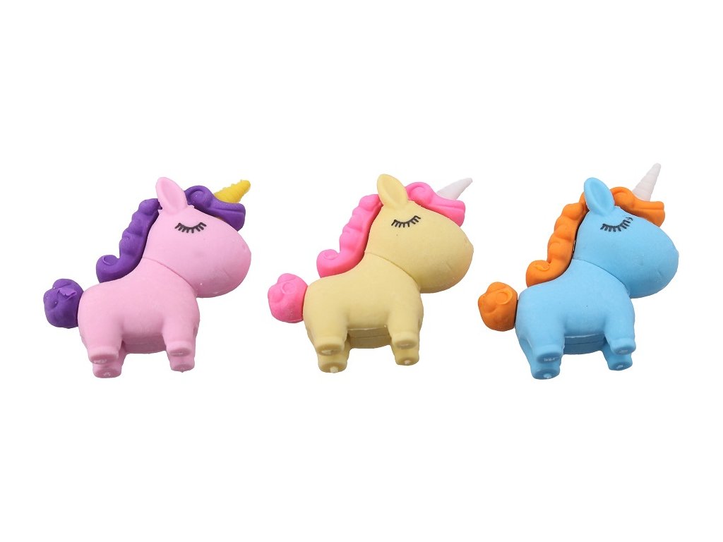 Guma mazacia jednorožecMazacia guma je základnou výbavou každého školského peračníka, pre malého školáka je skoro každodennou pomôckou. Veľkosť: 4 x 3,5 cm3 farby : ružová, modrá, žltá
