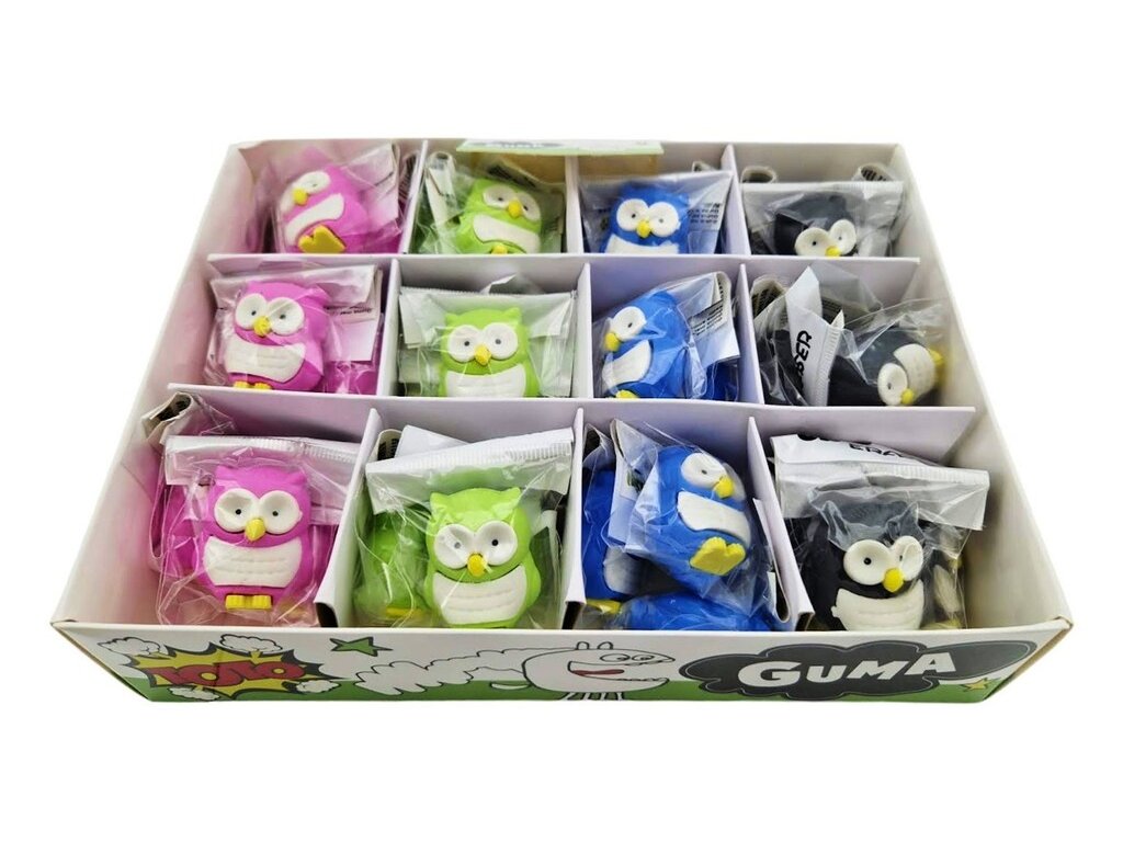 Guma mazacia sovaMazacia guma je základnou výbavou každého školského peračníka, pre malého školáka je skoro každodennou pomôckou. Veľkosť: 3 x 4 cmFarby: ružová, zelená, modrá, čiernaUvedená cena je za 1 ksV prípade záujmu o celé balenie obsah 36 ks