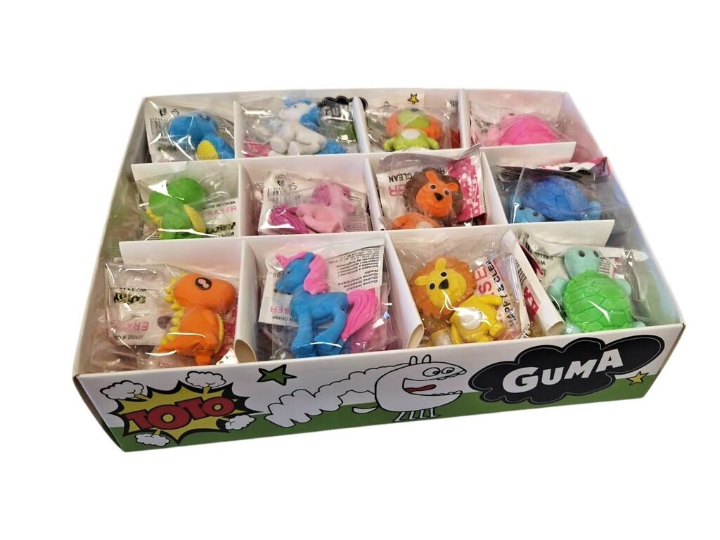 Guma mazacia zvieratkáMazacia guma je základnou výbavou každého školského peračníka, pre malého školáka je skoro každodennou pomôckou. Veľkosť: cca 4 x 5 cmRôzne motívy a farebné kombinácieV prípade balenia obsah 42 ks* Uvedená cena je za 1 kus. Zvolený variant / farbu napíšte prosím do poznámky k objednávke. Ak by ste nevybrali žiaden variant / farbu, zasielame náhodne podľa skladovej dostupnosti. Pokiaľ Vami vybraný variant / farba nebude skladom, budeme Vás informovať.