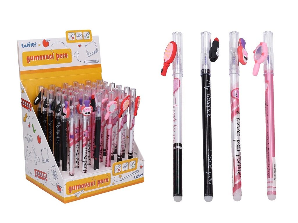 Gumovacie pero 0,5mm motív Kozmetika Hrúbka hrotu: 0,5mmMix motívov: ruž, parfém, zrkadielko, kefa na vlasyUvedená cena je za 1 ks (motív zadajte do poznámky)V prípade záujmu o celé balenie obsah 36 ks