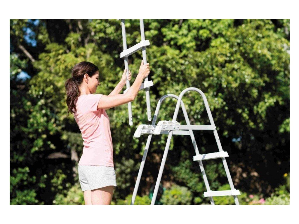 Intex 28075 Bazénový rebrík 1,07mBezpečnostní schodíky pre nadzemné bazény s výškou do 107 cm z pozinkovaných oceľových rúrok pre pohodlný vstup do i výstup z Vášho bazéna. Bezpečnostná bazénové schodíky s protišmykovými nášlapyStupne na vonkajšej strane schodíkov možno otvorením dvoch sklopných uzáverov jednoducho a rýchlo odňať - zamedzíte tak nekontrolovateľnému vstupu detí do bazénuPre nadzemné bazény s výškou bazénovej steny 91 - 107 cmNosnosť 136 kgOchranné krytky proti poškodeniu fólie bazénaVýrobca, bezpečnostné upozornenie a užívateľský manuál.pdf