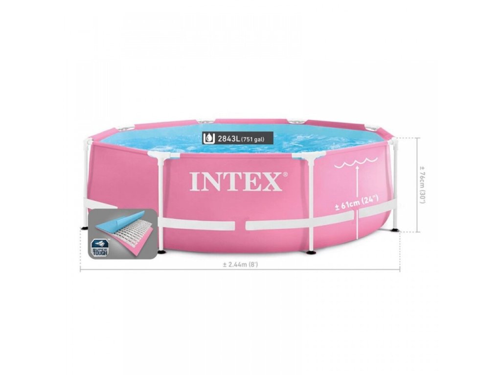 Intex 28290 Záhradný bazén ružový 244 x 76 cm Pripravte sa na horúce leto. Bazén sa ľahko zostavuje. Pripravíte si ho sami bez použitia náradia v priebehu niekoľkých okamihov.Hotová sada s kompletným vybavením .Keď si kúpite bazén INTEX so špecializovaným príslušenstvom, môžete si byť istí, že dostanete najvyššiu kvalitu a že všetko bude do seba zapadať.Obsah sady:244 x 76 cm rámový bazénOpravná záplataNávod na použitie v poľštineKonštrukcia najvyššej kvalityOdolný trojvrstvový materiál PVC.Nylonová výstuž medzi vrstvami.Obliečka odolná proti prepichnutiu.Interiér s imitáciou mozaiky v bielej a modrej farbe.Bazén pripravený v 3 rýchlych krokoch:Rozbaľte škrupinu.Zostavte rám - nie je potrebné žiadne náradie.Napustite vodu - hotovo!Teraz vám rozbalenie takého veľkého bazéna zaberie len niekoľko okamihov.Technické údaje:Bazén je vyrobený z kvalitných materiálov, ktoré sú súčasťou baleniaRozmery bazéna 244 x 76 cmHmotnosť bazéna 11,6 kgOdporúčaná hladina naplnenia vodou: 90 %Kapacita: 2 843 l