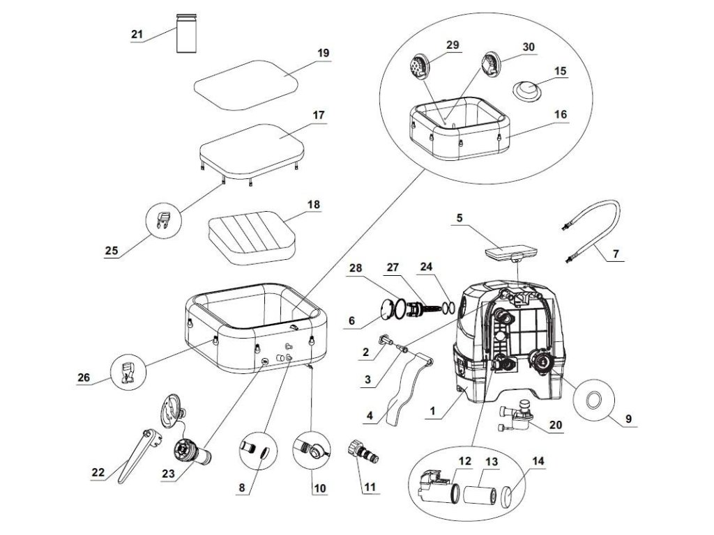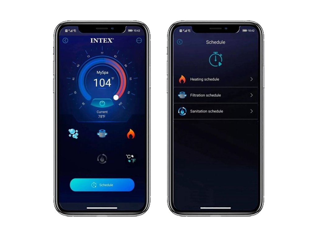 Intex 28452 Vírivka Pure Spa Greystone Deluxe so systémom slanej vodyS vonkajšou veľkosťou 239 × 239 (merané uhlopriečne) x 71 cm Vám vírivka Pure Spa Greystone Deluxe neponúka iba miesto na relaxáciu pre 6 osôb, ale aj nepreberné množstvo zábavy a pohodlia.Uzatvárateľný termoizolačný kryt slúži na vyššiu bezpečnosť Vašej vírivky a zároveň znižuje náklady na ohrev vody na minimum. Ovládanie WiFi aplikácie INTEX Link Vám umožňuje pomocou mobilného zariadenia zapnutie/vypnutie funkcií vírivky a dokonca aj diaľkového programovania času pre neskoršie použitie. vonkajší rozmer 239 × 239 cm (merané uhlopriečne)Vnútorný rozmer 188 × 188 cm (merané uhlopriečne)Výška: 71 cmObjem 1098 lHmotnosť bez vody 55,1 kgNapájanie 220 – 240 V / 50 HzOhrev vody 2200 WDĺžka ohrevu vody cca 1 – 2 ° C / hv závislosti na vonkajších podmienkachMasážne vzduchové čerpadlo 800 WPočet vzduchových trysiek s predohrevom vzduchu 170Filtračné čerpadlo 1.741 l/hIntegrovaný systém ochrany proti vodnému kameňu – Hard Water system 10 WIntegrovaný systém úpravy slanej vody – Solinátor 20 WHorný diel/materiál bazéna laminovaný vinylUzatvárateľný termoizolačný krytAutomatický systém ohrevu vodyObsah balenia:Intex Pure Spa 6 osôbÚložná taškaPodložka pod bazénIzolačný krytDávkovač chlóruNáplň do čerpadlaopierky hlavyfiltreUžívateľský manuál a údržba.pdf