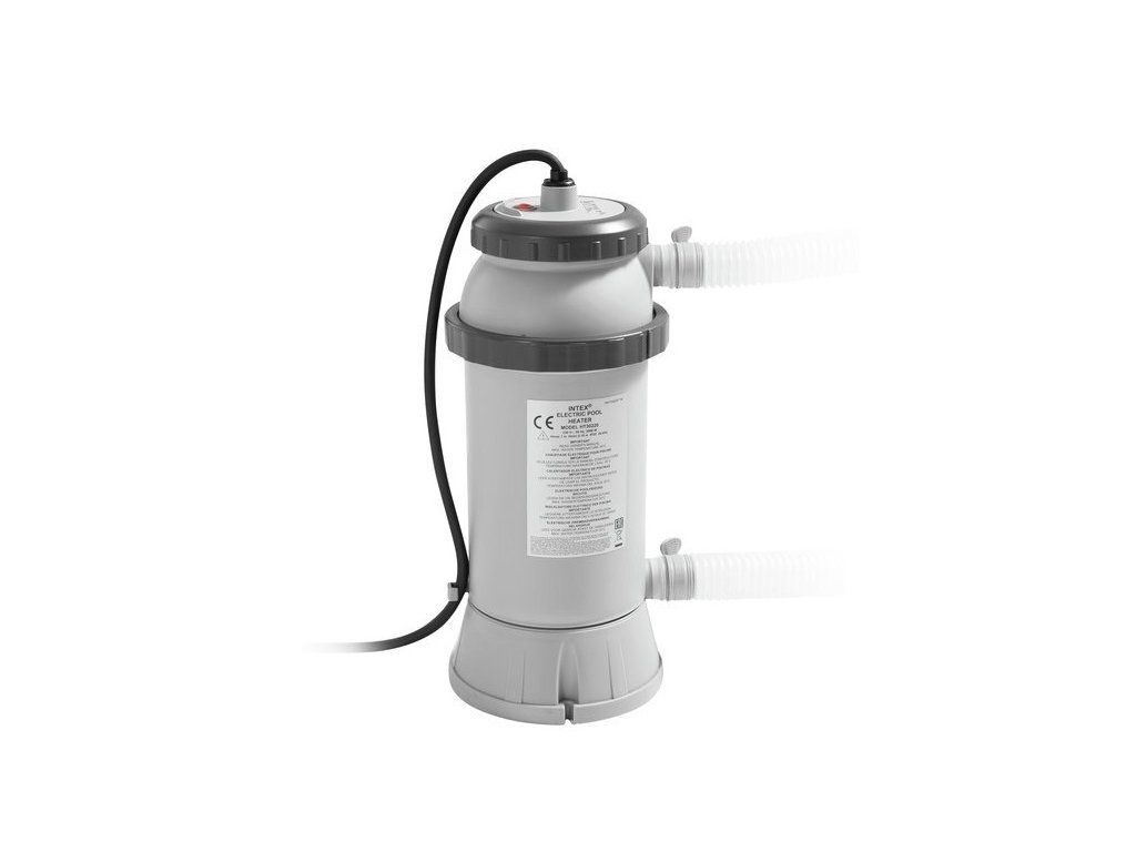 Intex 28684 Elektrický ohrev vodyOhrev sa napája k filtračnému zariadeniu. Voda prúdiaca z filtrácie do bazéna sa ohrieva pomocou vykurovacej elektrickej špirály umiestnenej v tele ohrevu. Na inštaláciu ohrevu je nutné, aby pripojenie filtrácie k bazénu bolo vykonané hadicou s priemerom 32mm. Určené pre nadzemné bazény INTEX.Maximálny prietok vody do 4m3/hod. Teplota vody až 35 °C. Maximálny objem vody v bazéne 15m3 Parametre: 230V, 50Hz, 3000W, chránenie IP25. Elektrický ohrev bazéna musí byť nainštalovaný ako posledná časť v rade na hadicu, ktorou sa vracia voda späť do bazéna (za filtráciou). Pre lepšiu účinnosť elektrického ohrevu odporúčame použiť solárnu plachtu.Obsah baleniaohrevhadica 32mm s dĺžkou 1,5m2ks hadicové sponyteplomer