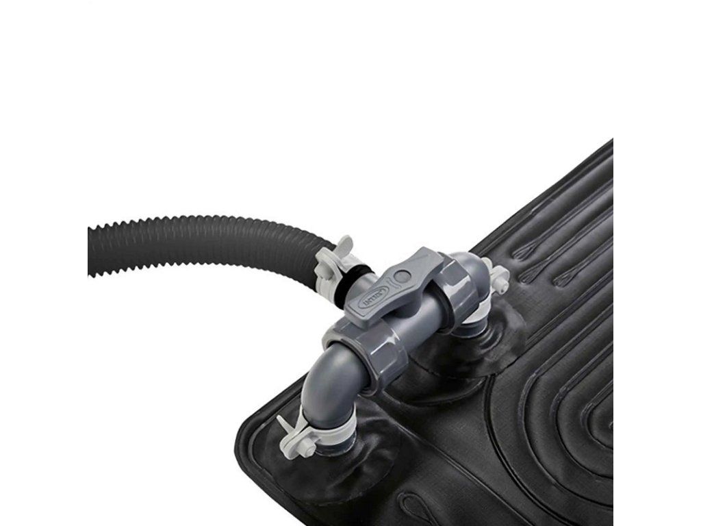 Intex 28685 Solárny ohrev Intex 120x120cmOhrievajte vodu zadarmo.Solárny ohrev Intex 120 x 120 cm je určený pre nadzemné bazény. Pre väčšie bazény je možné tieto solárne kolektory spojiť a zvýšiť tak ich účinnosť. Vďaka nášmu solárnemu programu si zdarma predĺžite kúpaciu sezónu a zvýšite kúpací komfort. Solárny panel Intex pohlcuje tepelnú energiu slnečných lúčov a odovzdáva ju vode, ktorá panelom prúdi. Chladná voda z bazéna je pomocou filtračného systému vháňaná do solárneho panelu. Zvýši teplotu vody až o 3 až 5 stupňov počas sezóny oproti bazénom bez ohrevu. Vhodný pre použitie s filtračnými systémami do prietoku 7570 l/h.Parametre:Redukciu pre pripojenie 38 mm hadicePotrebný výkon filtrácie: 2 m3/hod max. 1 panel, pri viac paneloch je potrebná piesková filtrácia min. prietok 4 m3/hMax. prietok filtrácie: 7570 l/hMax. objem vyhrievanej vody 4 m3 ( 1 panel )Rozmery ohrevu: 1,2 x 1,2 mPripojenie: 32 mm hadiceMontáž: rovný plochý povrch - zem, plot, strechaVhodný pre kartušové filtračné systémy max. 1 panel, pri viac paneloch je potrebná piesková filtrácia min. prietok 4 m3/hObsah balenia:Solárny panelRedukcie na 32/38mm hadice (adaptér A, adaptér B)5 ks hadicová sponaČierna hadica s priemerom 32mm - 50 cm
