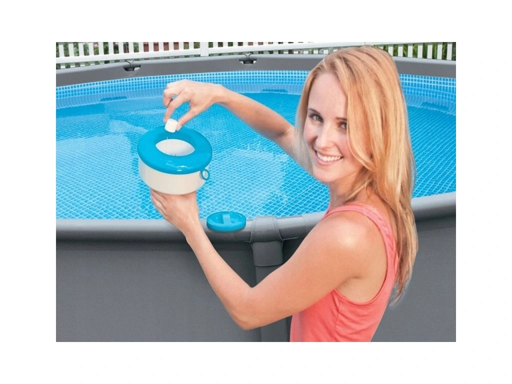 INTEX 29041 Plávajúci dávkovač chémiePlavák sa samovoľne pohybuje po hladine, čím je podporená rovnomernosť dávkovania prípravkov. Plavák má priemer 17,8 cm na 2–3 ks tabletyPlavák vhodný pre tablety 200gVhodné pre stredné bazény