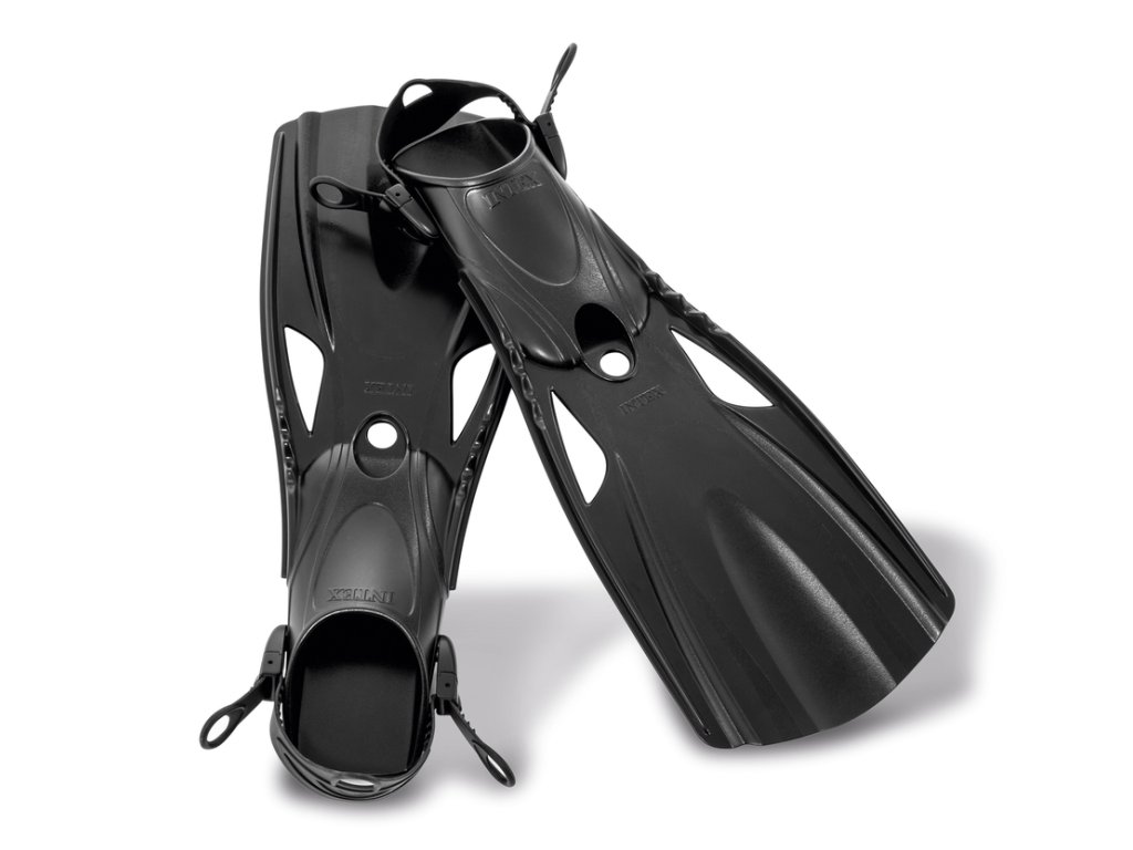 Plávacie plutvy Intex 55634Kvalitné plávacie plutvy Intex rady Sport Fins.Technický popis: Výrobca: Intex Vyhovuje veľkosti topánok US (8-11), EÚ (41-45), CM (26-29) Polymérne lopatky s vysokou hustotou pre silné natáčanie nôh Otvorený dizajn nohy s nastaviteľným popruhom pre optimálne uchytenie Farba: Čierna Odolnosť a väčšia rýchlosť