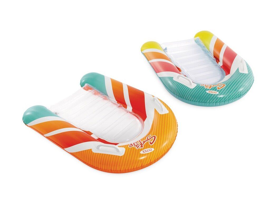 Intex 58172 Nafukovacia doska s držadlamiNafukovacie ležadlo s madlami Surf's Up Rider disponuje dvomi pevnými madlami pre lepšiu stabilitu a priehľadným dnom, aby deti mohli pohodlne pozorovať svet pod sebou. Pre deti od 6 rokov. Rozmery: 79 x 13 x 58 cmNosnosť: 40 kg