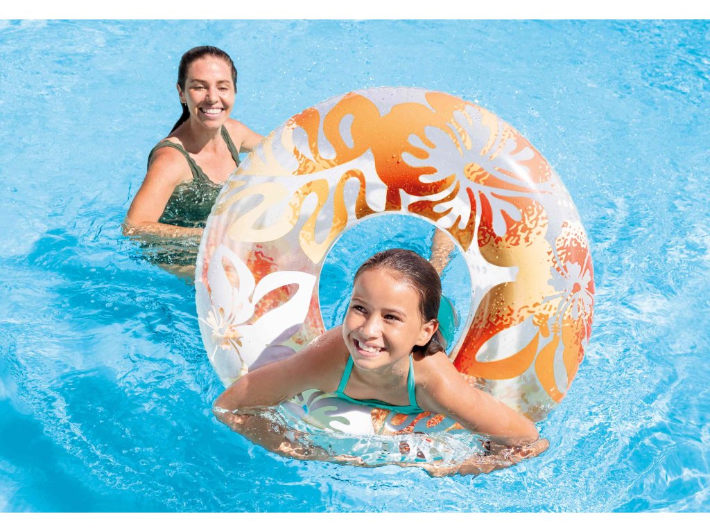 INTEX 59251 Clear Color Tubes nafukovací kruhDetské plávacie koleso s tropickým motívom sa určite bude páčiť vašim deťom. Deti s ním zažijú veľa zábavy a hlavne sa môžu bezpečne zdokonalovať vo svojom plaveckom nadaní. Veľkosť 91 cmFarby: oranžová, fialová, modráVýrobca, bezpečnostné upozornenie a užívateľský manuál.pdf