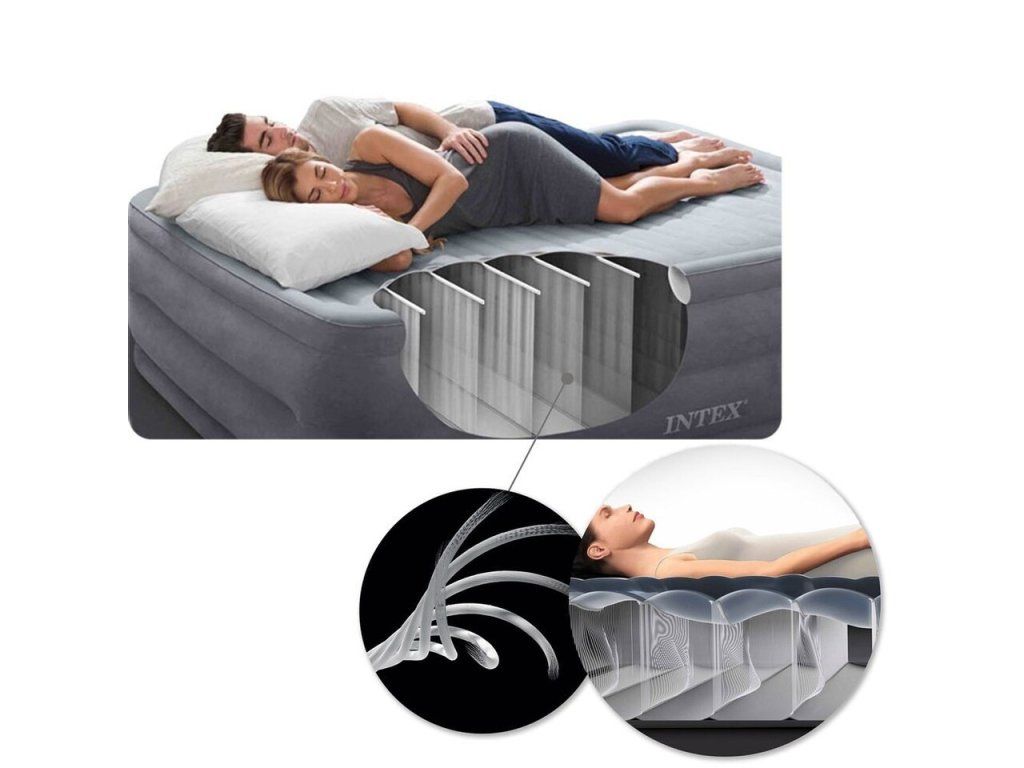 Intex 64177 Nafukacia posteľ Dura-Beam 99x191x30cmPohodlný, všestranný nafukovací matrac INTEX zo série PRESTIGE MID-RISE. Táto nová 30 cm vysoká nafukovacia posteľ ponúka skvelé riešenie spania, či už v domácnosti alebo mimo domova. Osvedčená konštrukcia Fiber-Tech™ zaisťuje príjemný spánok a maximálny komfort, nech ste kdekoľvek. V balení nájdete aj elektrickú pumpu INTEX 66616 USB150 pre rýchle a praktické nafukovanie aj vyfukovanie. Pumpa je napájaná pomocou USB-A pripojenia (2A+). Výrobca: IntexRozmery: 99 x 191 x 30 cmTechnológia Fiber-TechVeľmi odolný materiálVentil 2v1Hmotnosť: 3,9 kgV balení tiež USB pumpa Intex (150L/min)Rýchle nafúknutie aj vyfúknutie