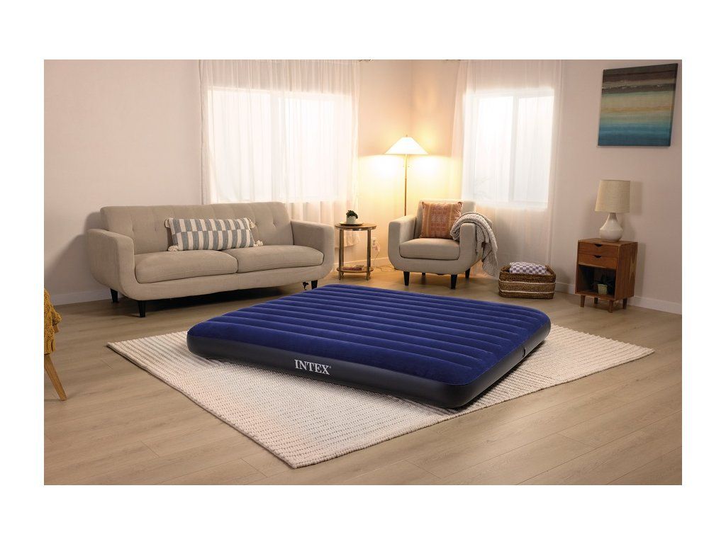 Intex 64755 Nafukovacia posteľ King Classic DownyNech ste kdekoľvek, budete sa cítiť ako doma s posteľou Classic Downy Airbed od firmy Intex. Matrac je ľahký a univerzálny, môžete si ho vziať so sebou kamkoľvek: nafúknete za pár minút a môžete odpočívať. S ventilom 2 v 1, ktorý je vhodný pre elektrické aj ručné pumpy, je nafukovanie a vyfukovanie jednoduché a rýchle. Farba: modráNosnosť max.: 272 kgRozmery: 183 x 25 x 203 cm