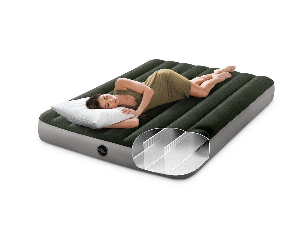 Intex 64778 Nafukovacia posteľ Full Prestige Downy s pumpou na baterkyNerobte kompromisy pri svojich dobrodružstvách! Spite pohodlne doma alebo pri kempovaní s nafukovacou posteľou Prestige Downy od firmy Intex. Ľahká a univerzálna, môžete si ju vziať so sebou a v prípade potreby ju v priebehu niekoľkých minút nafúknuť. S ventilom 2 v 1, ktorý je vhodný pre elektrické aj ručné pumpy, je nafukovanie a vyfukovanie jednoduché a rýchle. Batériová pumpa je súčasťou balenia. Farba: tnavozelenáRozmery: 137 x 25 x 191 cmNosnosť max.: 272 kg