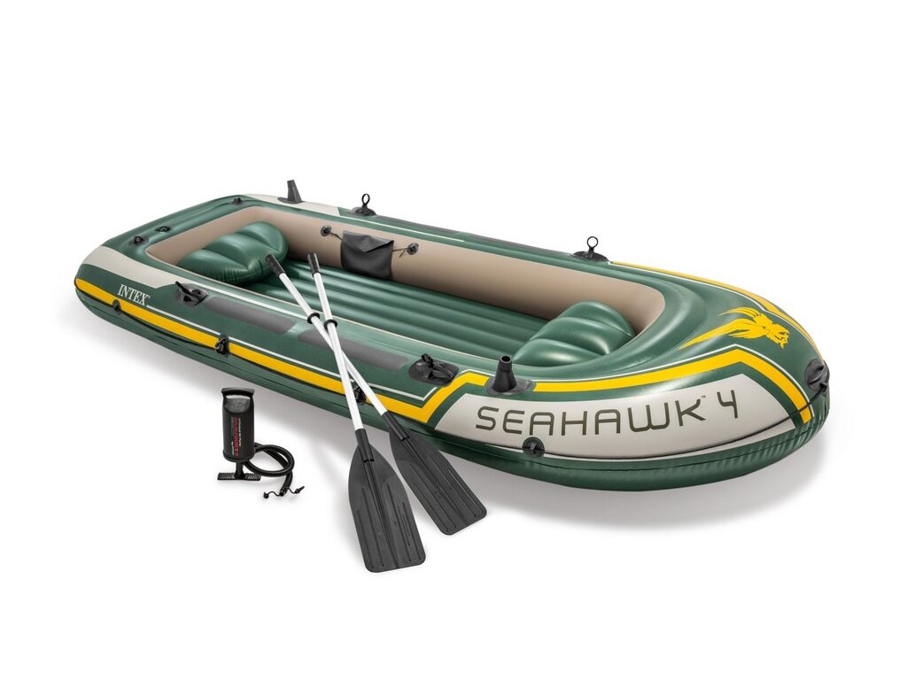 Intex 68351 čln Seahawk 4 SetIntex nafukovací čln Seahawk 4 set, výrobca Intex. Tohtoročný model obľúbeného člnu pre 4 osoby. Nafukovací čln vhodný na rekreačné používanie najmä na rybníkoch i na priehradách či na pokojných riekach.Popis nafukovacieho člna Seahawk 4 Set: súčasťou sú alumíniové veslá a ručná pumparozmery člnu: 351 x 145 x 48 cm (hmotnosť balenia 21,9 kg)Odporučené množstvo osôb: 4/ max.480 kgvýrobca IntexRugged Viny konštrukcia materiálu3 vzduchové komory vrátane pomocnej vnútornej komorynafukovacia I Beam podlaha pre väčší komfort a stabilituextra hrubé steny - 0,75 mm1 rýchlonafukovací a rýchlovyfukovací bostonský ventil na hlavnej komorenafukovací čln je vybavený praktickým držiakom pre jednoduché uchopeniepo celom obvode člna je záchytný povraz pre jednoduchšiu manipuláciupuzdro na náradie na dne lodedržiaky vesielNovinka 2020! Otočné držiaky na vesláVeslá je možné rozložiť na 3 časti( jednoduchšie prenášanie a skladovanie)dva držiaky rybárskych prútovzávesy na inštaláciu držiaka elektromotora alebo spaľovacieho motora, ktorý možno dokúpiť (Intex držiak na motor katalógové číslo 68624)Výrobca, bezpečnostné upozornenie a užívateľský manuál.pdfSeahawk 4 set má certifikát NMMA - americkej námornej asociácie. Gumový čln prešiel testami americkej pobrežnej stráže a rakúskej TUV technickej skúšobneUrčené pre rodiny, rybárov - pre deti len v sprievode dospelej osoby.