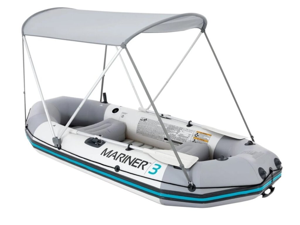 Intex 68600 Slnečná strecha na člnChráňte sa pred slnečným žiarením pomocou slnečnej strechy na čln! Či už rybárčite alebo sa len kocháte výhľadom do krajiny, slnečná strecha s UPF 50+ vám dovolí relaxovať na vode tak dlho, ako len budete chcieť. Hliníkové rúry a rám sú pevné a odolné. Odnímateľné a nastaviteľné popruhy umožňujú rýchle a jednoduché zostavenie strechy. • Strieška proti slnku je dôležitý doplnok pre dlhšie výlety na lodi za sparného dňa• Znižuje dehydratáciu posádky, podstatne znižuje riziko úpalu, úpalu• Odporúčame pre rodiny s deťmi• Prednosťou tejto slnečnej strechy je jednoduchá montáž - bez nutnosti nalepenia držiakaTechnický popis:• Kompatibilné s člnmi: Intex Mariner 3, Mariner 4, Seahawk 3. Seahawk 4, Excursion 4, Challenger 3.• Rozmer: 1,6m x 1,42m• Odolný materiál Oxford Fabric 420D• Ochrana proti UV žiareniu• Nastaviteľné dĺžky popruhov• Hliníková konštrukcia• Do vetra max. 4m/sVýrobca, bezpečnostné upozornenie a užívateľský manuál.pdf