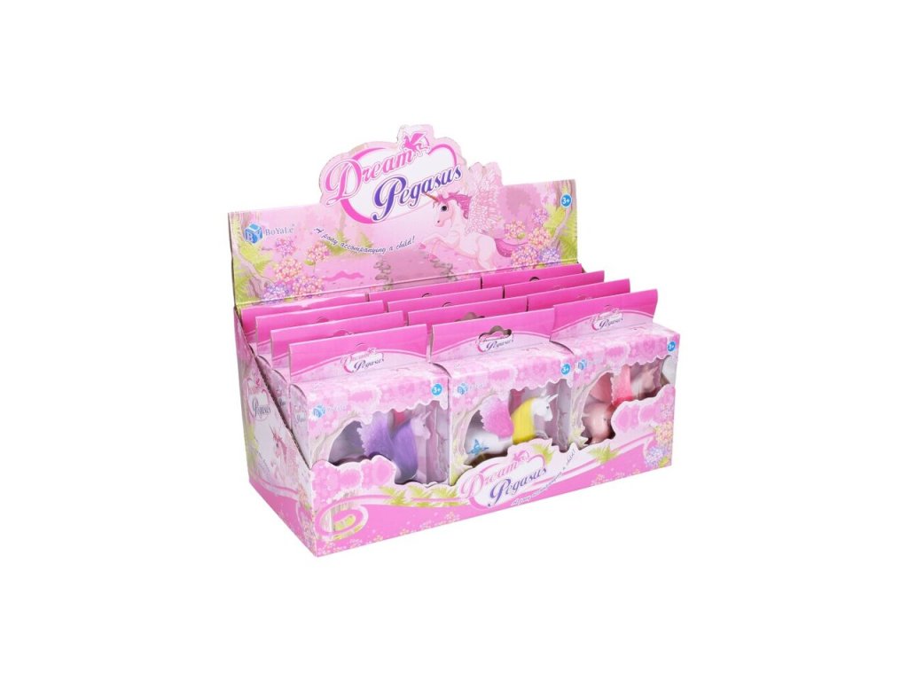 Jednorožec s hrebeňom 11cmPlastový jednorožec v krabičke s farebnou dlhou hrivou a chvostom. Súčasťou balenia je aj hrebeň. Veľkosť jednorožca: cca 11 cmVarianty: biely so žltou hrivou, ružový s bielou hrivou, fialový s fialovou hrivouV prípade balenia obsah :12 ksCena je uvedená za 1 kus